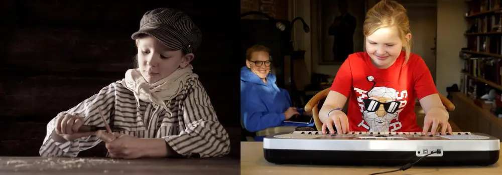 Søren Kristiansen var 9 år i 1865. Han bodde i Falletstua sammen med mor, far og seks søsken. "Sofie" representerer et 9 år gammelt barn av i dag. I utstillingen kan du sammenlikne livet til Søren med livet til Sofie.
