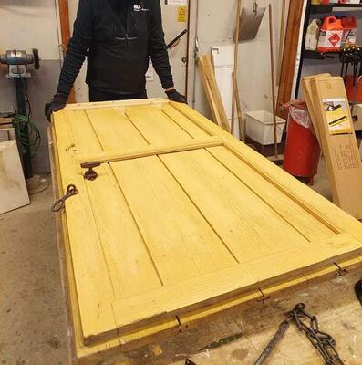 Døra til Mangenstua har blitt restaurert på kurs i regi av Akershus bygningsvernsenter - 9/13