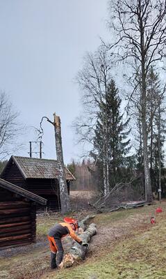 Et tre falt ned og traff deler av kjona. Marius ryddet opp - 8/13