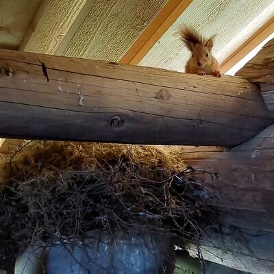 Vi har hatt en ekornfamilie med reir i separatoren på stabburet - 5/13