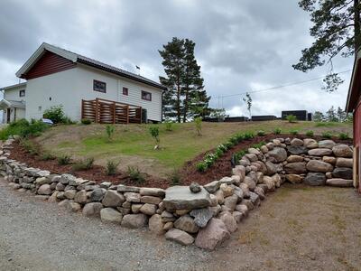 Aksel har bygd steinmur i ytterkant av nyttehagen - 3/13