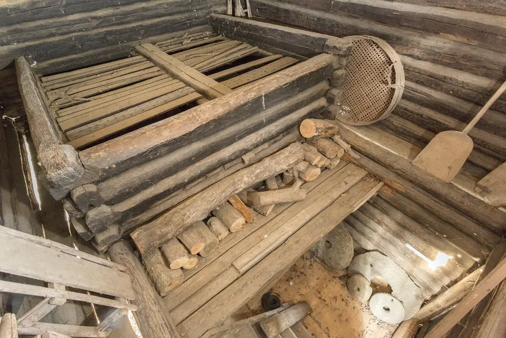 Etasjeskillet bar et glissent lag av spiler eller et lag med gjennomhullete fjøler. Over dette lå et teppe vevd av hestetagl, svinebust eller kuhalehår. Slike matter ble vevd på en vanlig vev. Prinsippet for tørkingen var at varm luft, som regel også røyk, strømmet gjennom malt-eller kornlaget. Røyken ga god smak til maltet som i sin tur ga god smak til ølet. Når korn og malt var tørt, løftet man på spilene og ristet løs det tørre. Fra karmen ble det karet ned i sekker gjennom trakter i karmkantene.