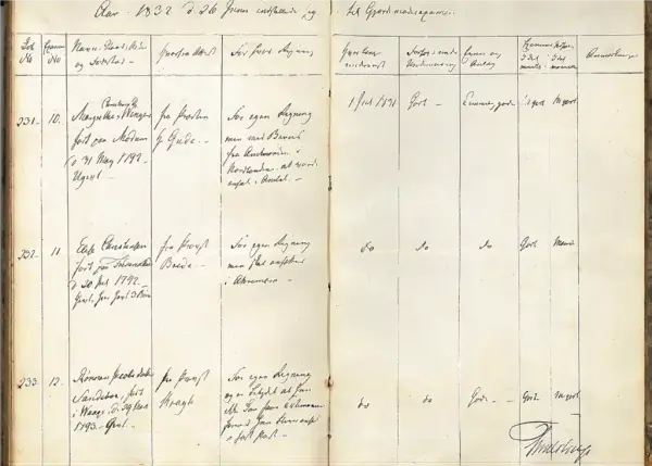 Rønnougs eksamensprotokoll fra jordmorutdanningen i Christiania.