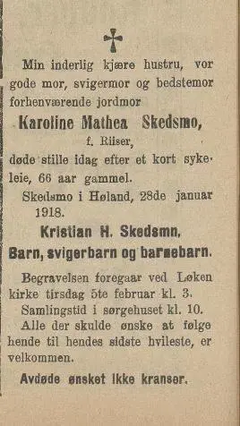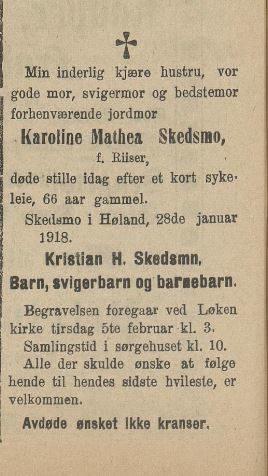Karoline Mathea Skedsmo 1852-1917