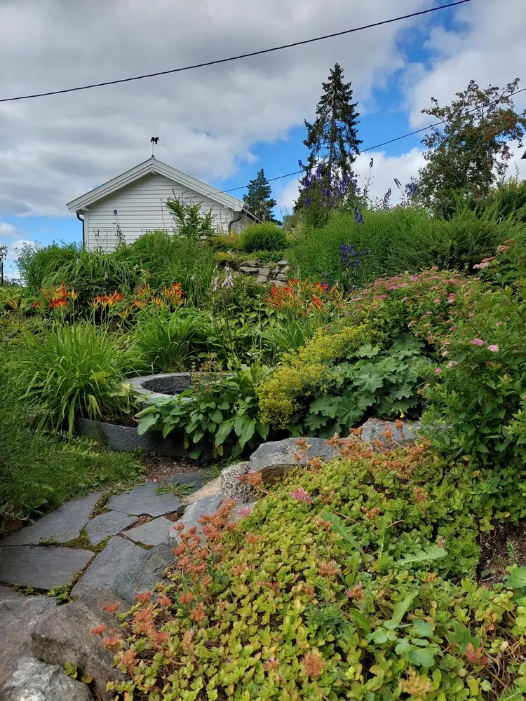 Rundt Sandmo er den flotte hagen som husmoren Greta Bjørklund la voldsomt mye energi og kjærlighet ned i. Hagen er restaurert av Hagegruppa, en gjeng frivillige som har lagt ned mange dugnadstimer på stedet. De har jobbet etter museale prinsipper der de har laget en hageplan basert på blant annet flere års kartlegging av vekstene i hagen.