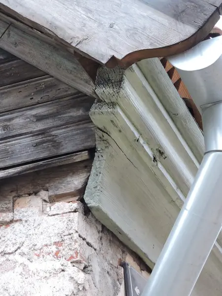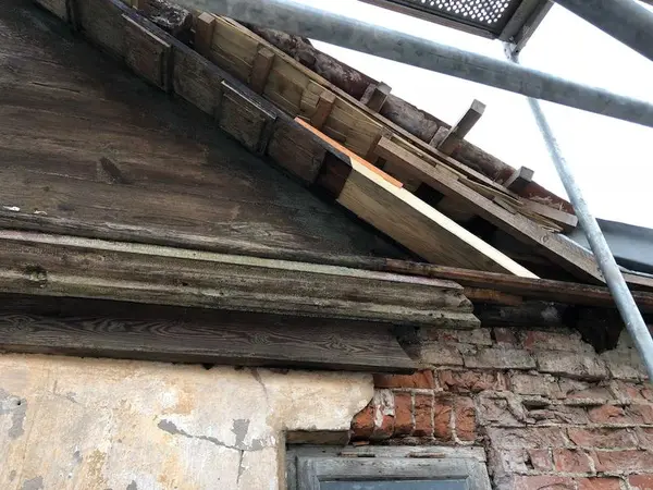 - På gavlveggen dukket det opp mange opprinnelige underliggere. Noen var dårlige og måtte skiftes ut, mens andre var fine. Kapping av noen bord i nedkant ble gjort for tilpasning av vannbrett.