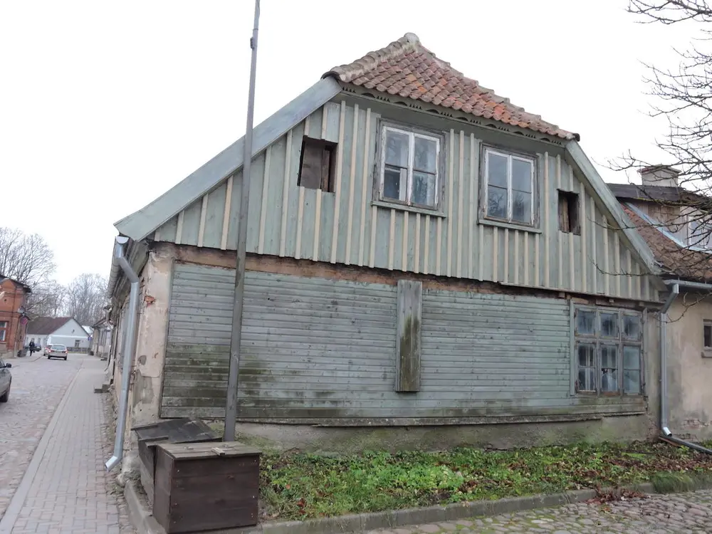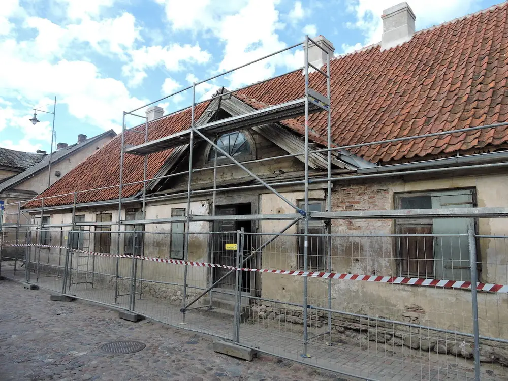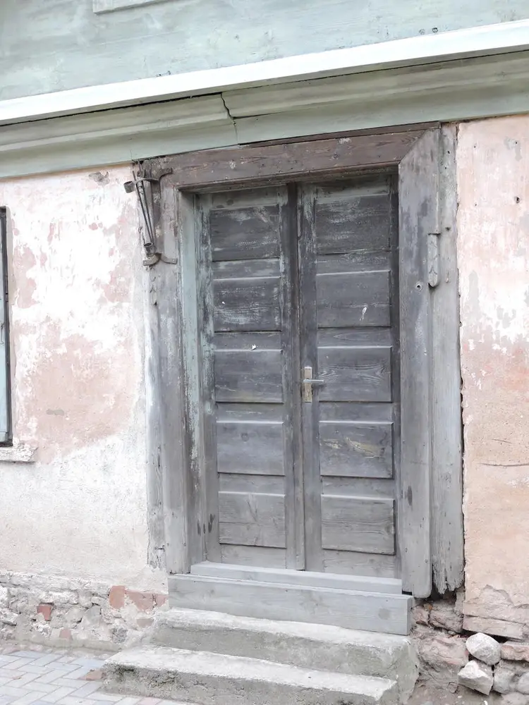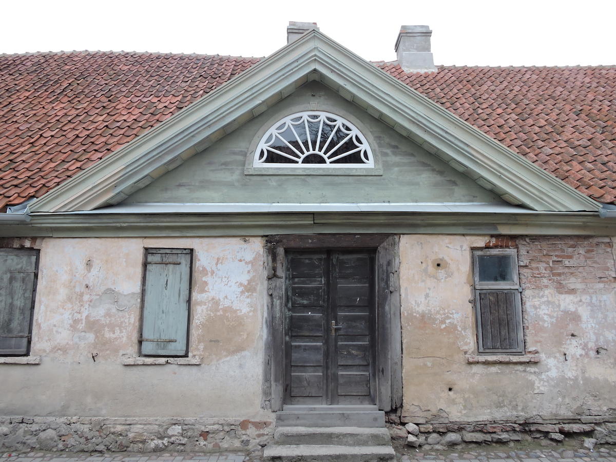 Eieren som jeg også traff, var strålende fornøyd med alt det fine arbeidet som var blitt utført. Nå ønsket han seg den opprinnelige tofløyede hoveddøren mot gaten tilbake. Karm og belistning står i veggen med nyere dørblader, mens de opprinnelige dørbladene finnes i Kuldiga bymuseums depot! Kanskje vi skal lage dørkopier neste gang?