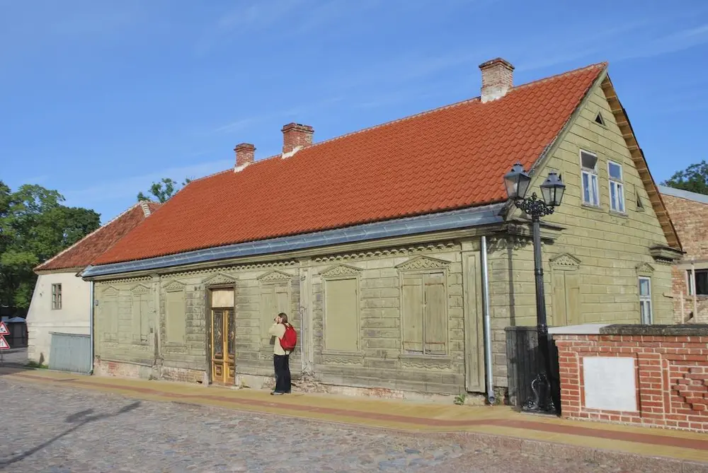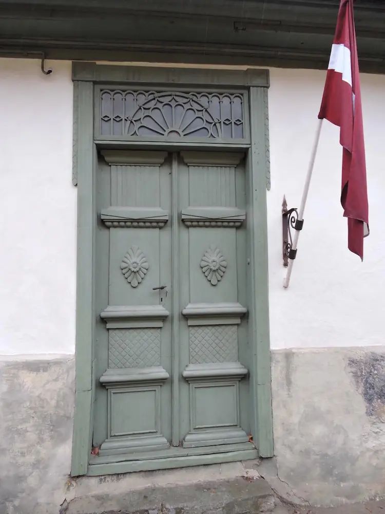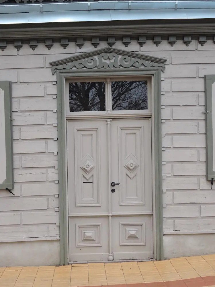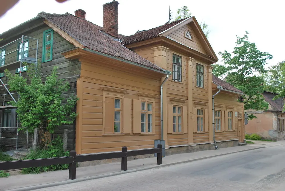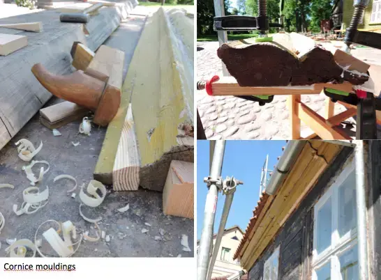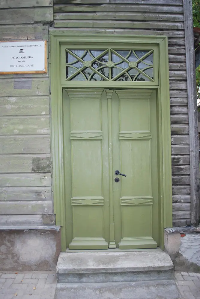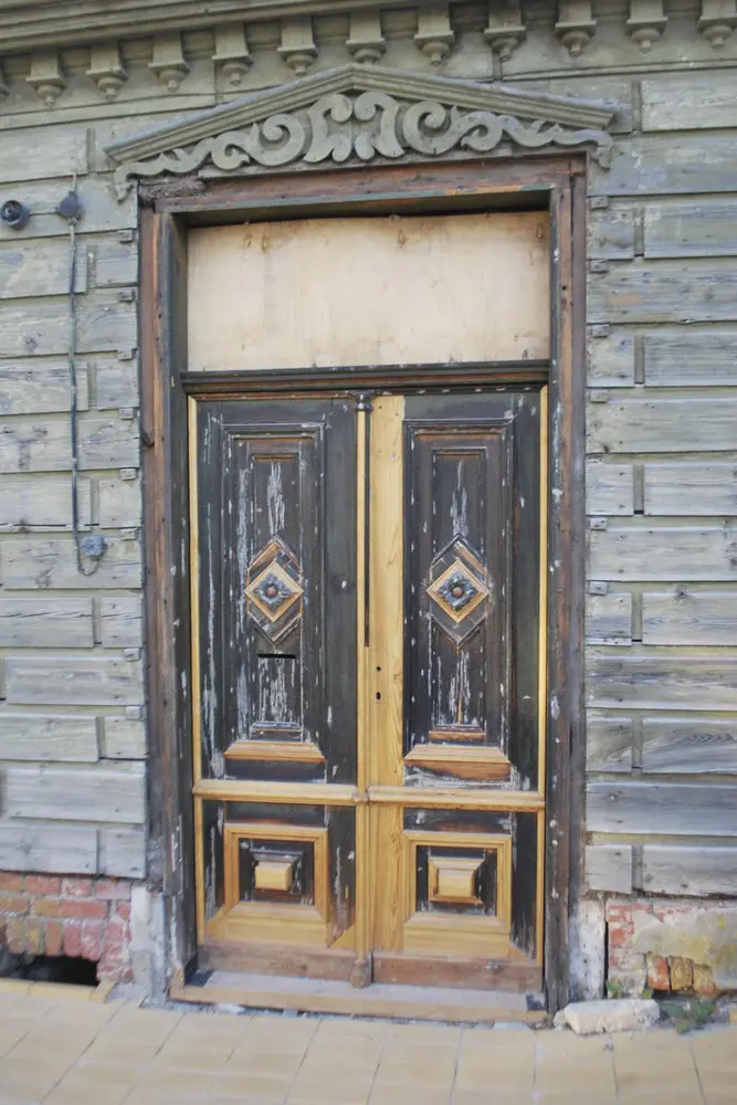 - Common profiles on wooden buildings in the old town of Kuldiga, Latvia