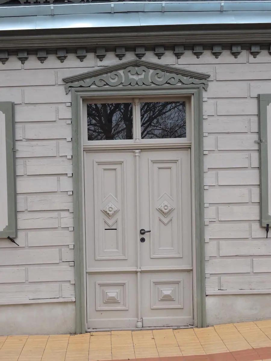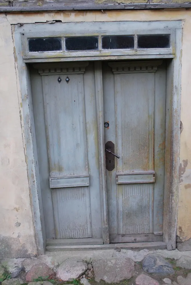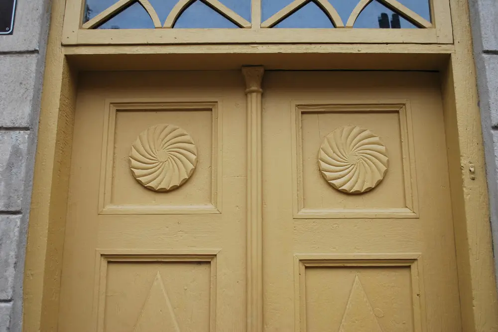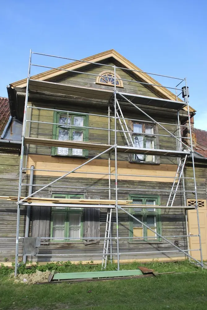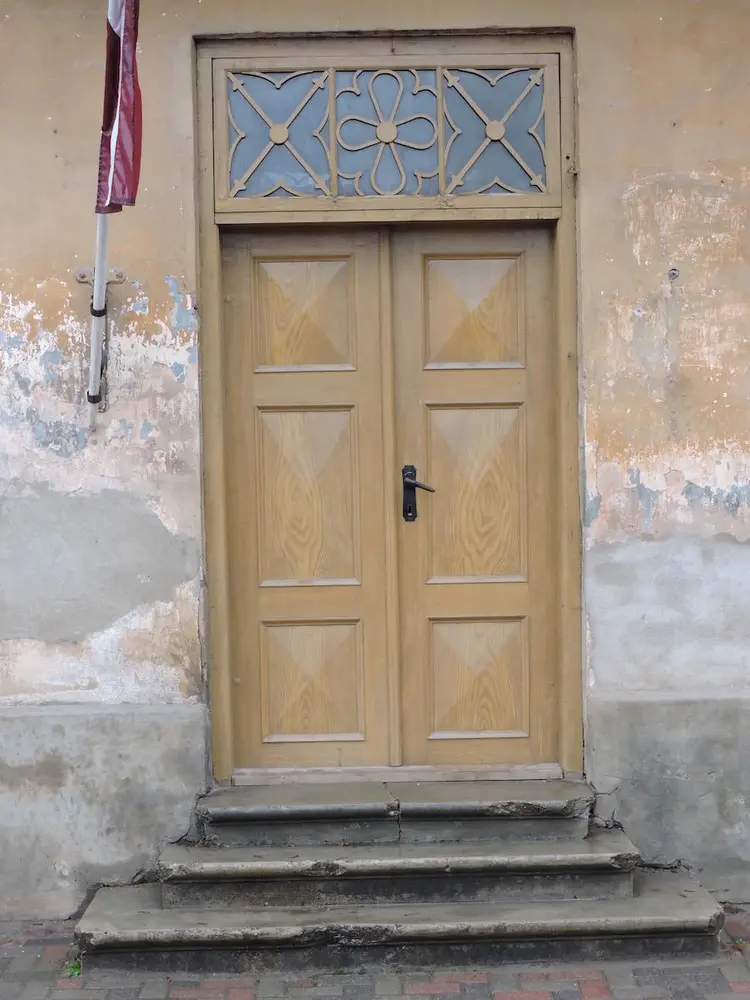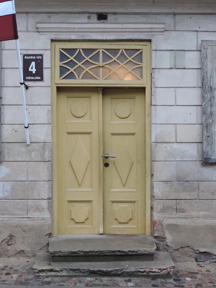 - Common profiles on wooden buildings in the old town of Kuldiga, Latvia