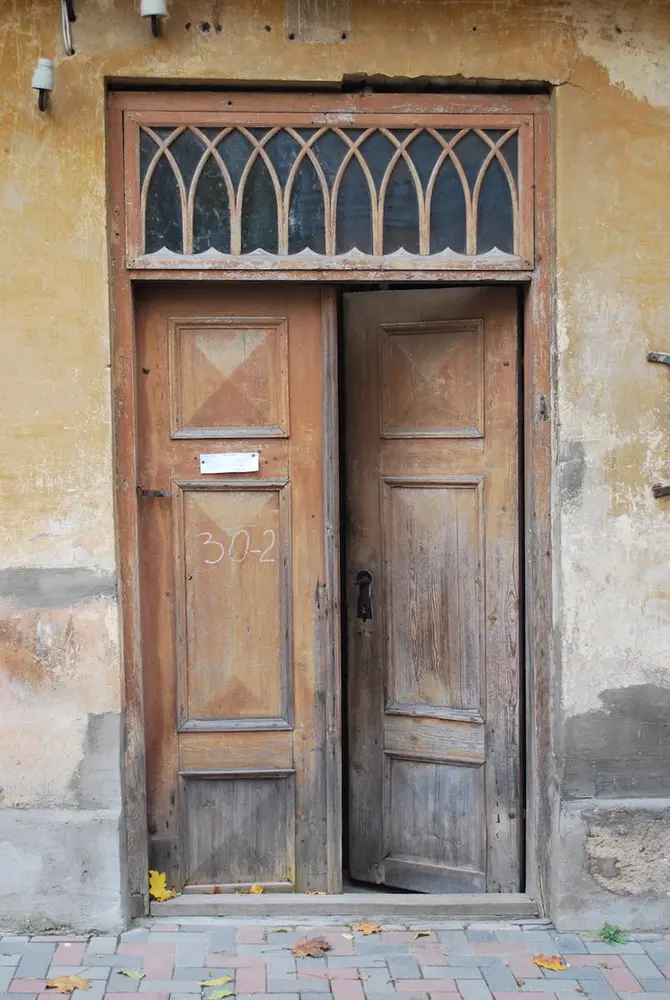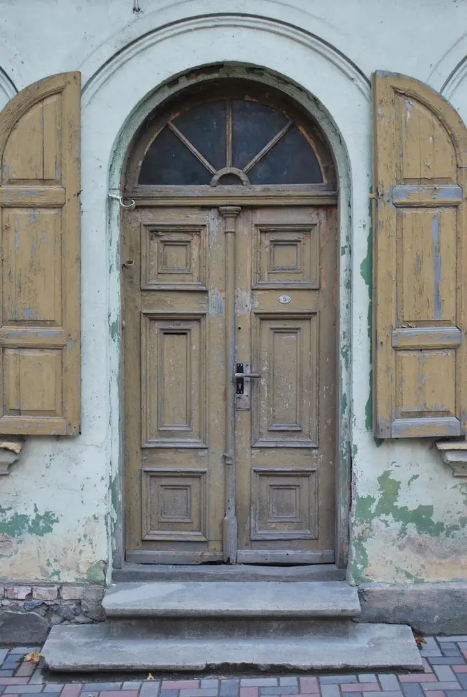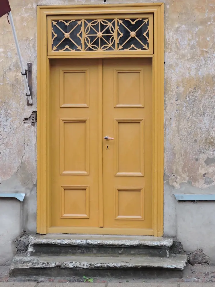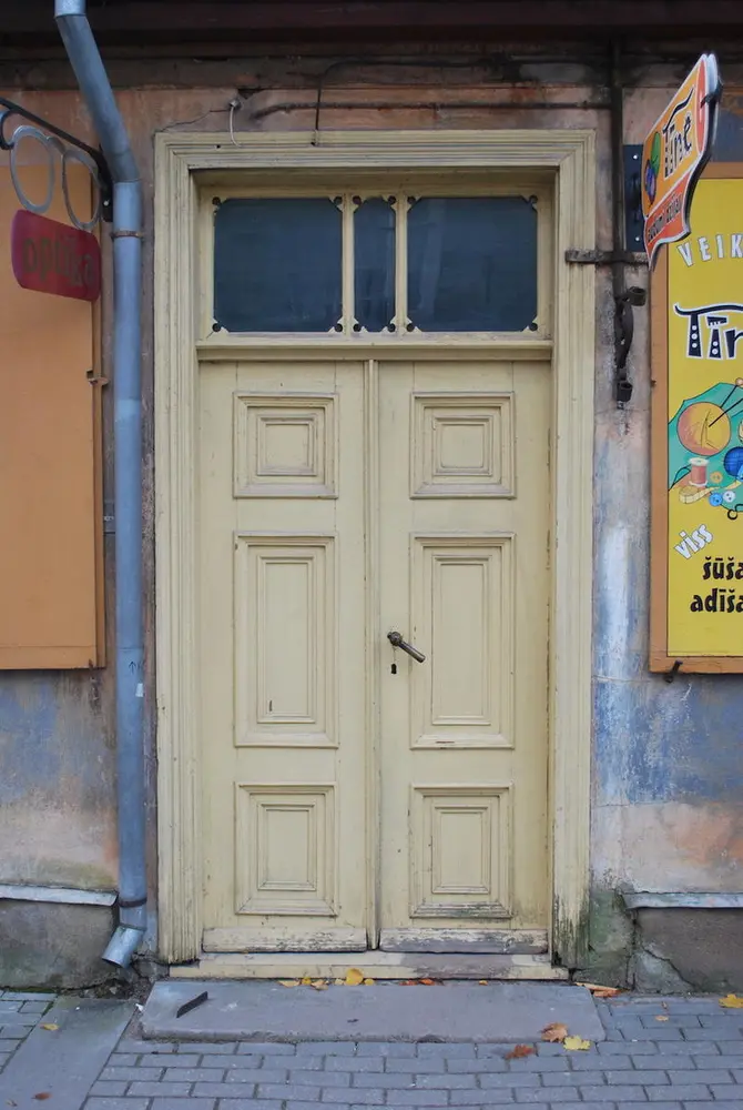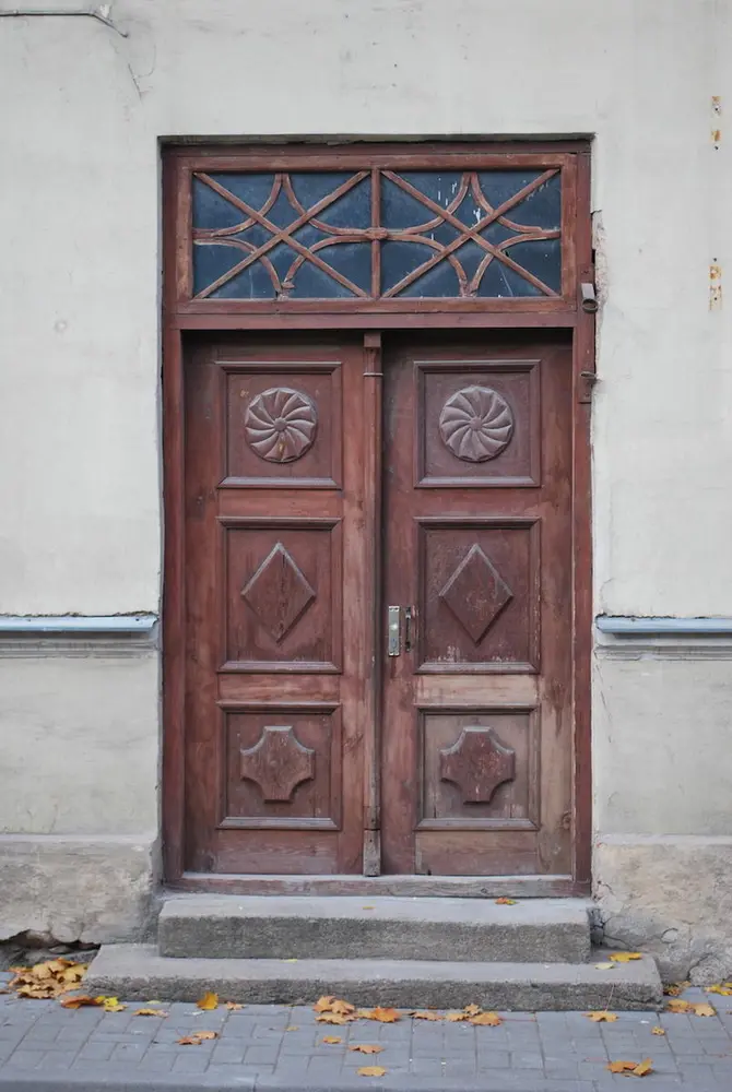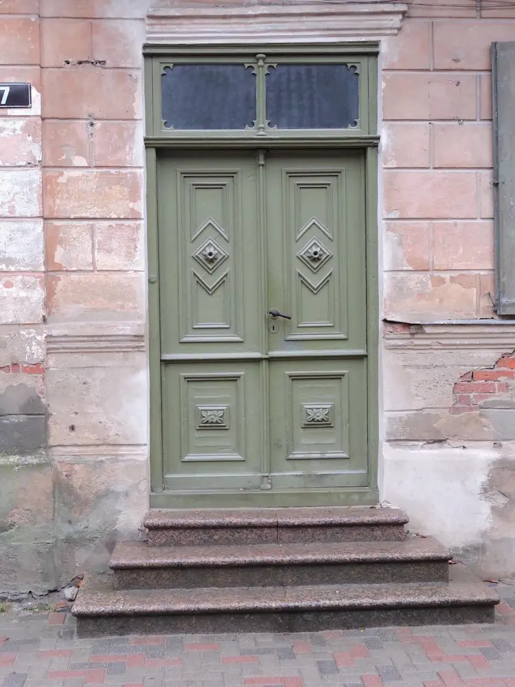 - Common profiles on wooden buildings in the old town of Kuldiga, Latvia