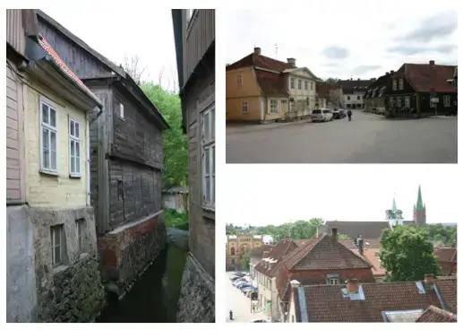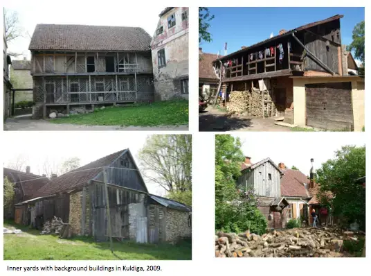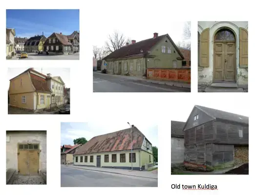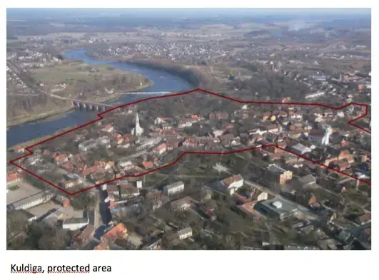 Gamlebyen i Kuldiga har 2500 innbyggere, mens hele kommunen har 15000. Gamlebyen er preget av bygninger fra 1670-1900. Den har egen verneplan og høy verneverdi lokalt, nasjonalt og internasjonalt.