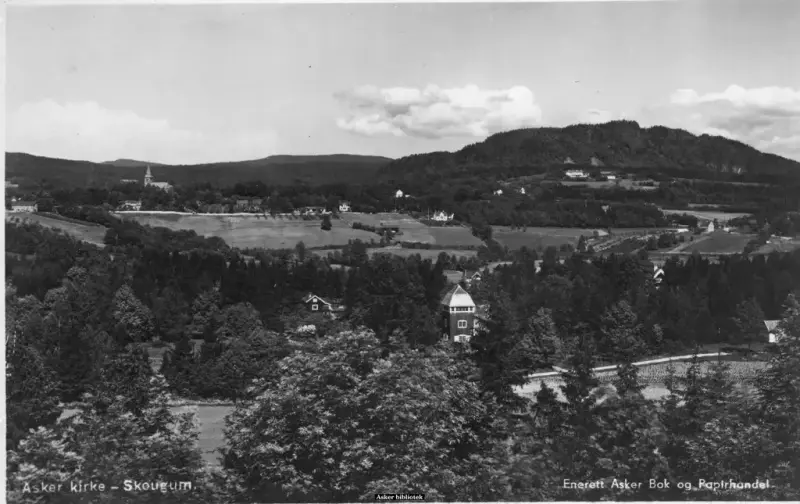 Hønsjordene mot Asker kirke og Skaugumsåsen. Ca.1930. - 3/4