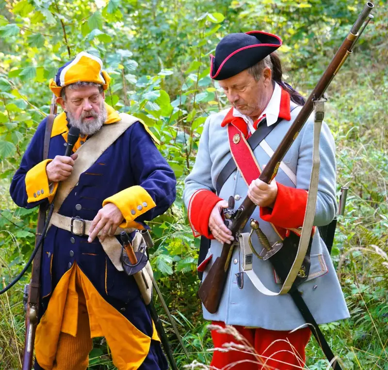 Fra Historielagets tur til Gjellbekk skanse. Svensk og norsk soldat i tidsriktige uniformer. - 4/4