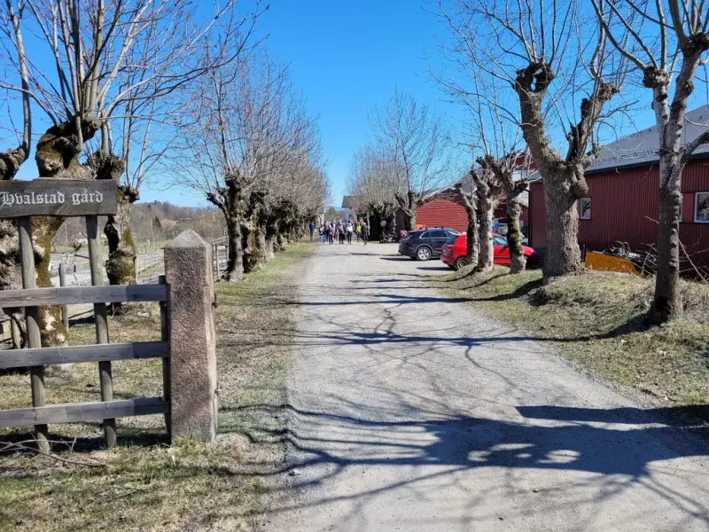 Fortsatt kan vi se restene etter Kongeveien, som de svenske dragoner fulgte. Her går den gjennom tunet på Hvalstad gård.