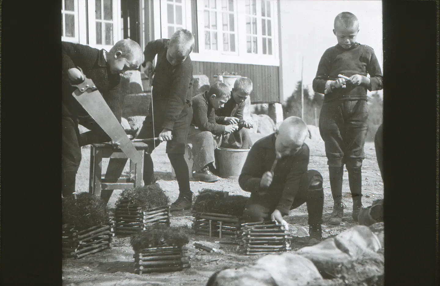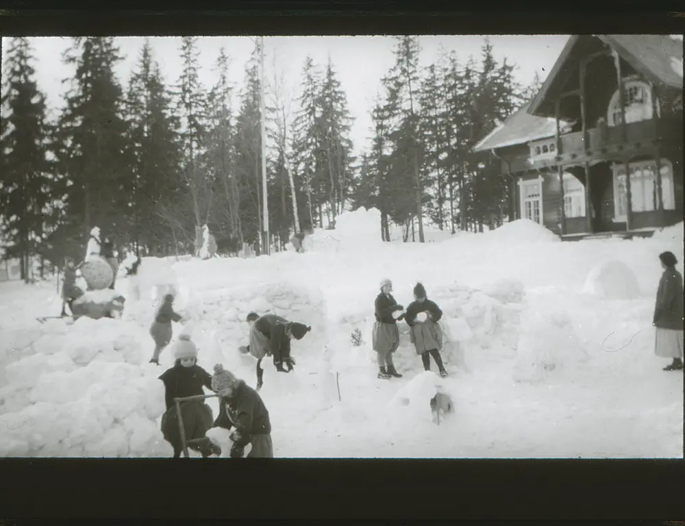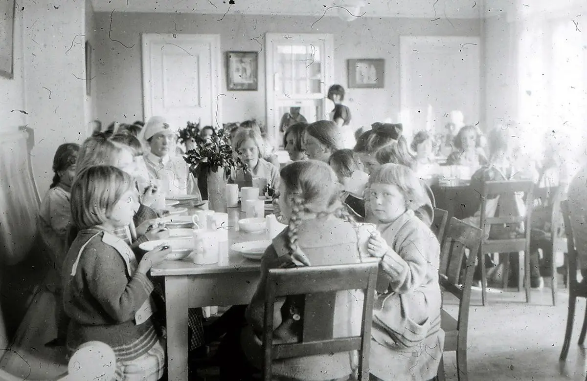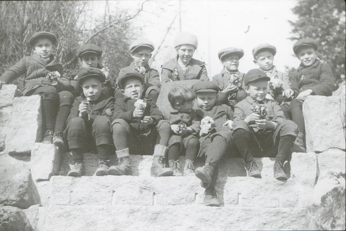Dr. (Dagny) Bang tok guttene ut. Aa, jeg husker det vel ! De så dårlige ut – de første 10 guttene, kjertelsvake, anemiske, nervøse, far eller mor var døde eller det var forskjellig som ikke var godt der hjemme. Man så i ansiktsdraget at sorgen hadde merket dem. Det var den 12. januar i 1921 vi brautet oss frem mellom snøfanene. Vinteren var usedvanlig streng det året, mye snø, mye kulde dyrtid og streiker – jernbanen stod, vondt å oppdrive både mat og klær. Men det gikk som i ordsproget: Når nøden var størst, var hjelpen nærmest, dog gleden ved å se barna komme sig på kropp og sjæl feiet sorgene vekk. All begynnelse er svær. Kristianiagutter i den viltreste alder er ingen lett sak. Alt skal læres, spise og tygge – de sluker -. Så skal de lære å stå og gå, snakke pent til hverandre, ikke brøle og sloss. Barn har lært sig til å skrike om kapp med biler og sporvogner i Kristiania. De er ikke til å ha i hus, og ute i stillheten er de som varg i veum. Vi slet den vinteren og næste med. Det gjelder ikke å få en hel ny besetning. Der må være noen av den gamle garde til å lære op de nye. Barn lærer mer av eksempel enn av ord, mer handling, mindre tale!