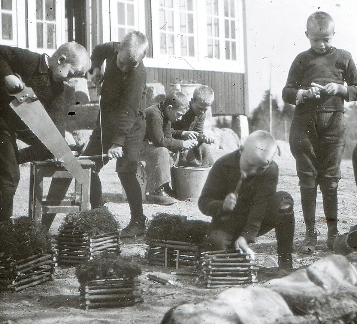Resultatet av Friluftsskolen var ypperlig. Guttene var som forvandlet. Jeg kan sammenligne dem med planter som en tar opp fra kjelleren om våren og setter i et sollyst vindu. De gule vannskudd skifter med grønne. Men der er egenskaper der er vanskelig å rette, og som jeg vil kalle tidens synder, det er den grenseløse uorden og likegyldighet med tingene. De vører hverken klær eller matriel. Det er tungt å ha med et skolehjem å gjøre, nettopp av den grunn. Man går trett av evig uorden. Her sporer vi vel frukten av gratiseriet. Jeg ser hver dag hvordan bestyrer og betjening sliter. Sverige er bedre stillet fordi de har aldri våget seg så langt på glattisen. Det betales, om enn aldri så lite. Hos oss er barnet ikke ansvarlig for en pennesplitt engang, det er demoraliserende, og jeg fatter ikke at våre skolefolk ikke innrømmer det.