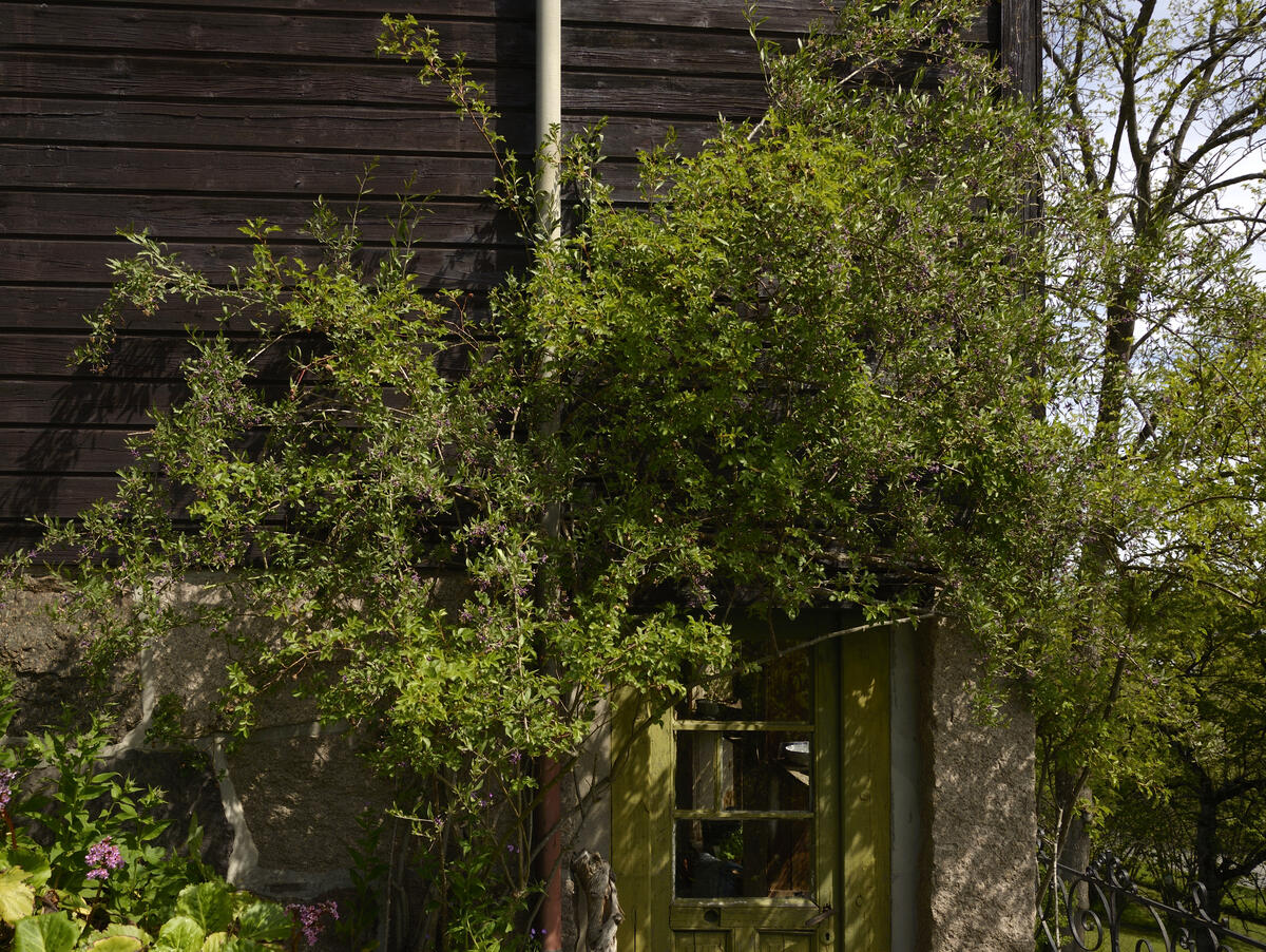 - Pryd: Frittstående busk, mot vegg, som hekk.