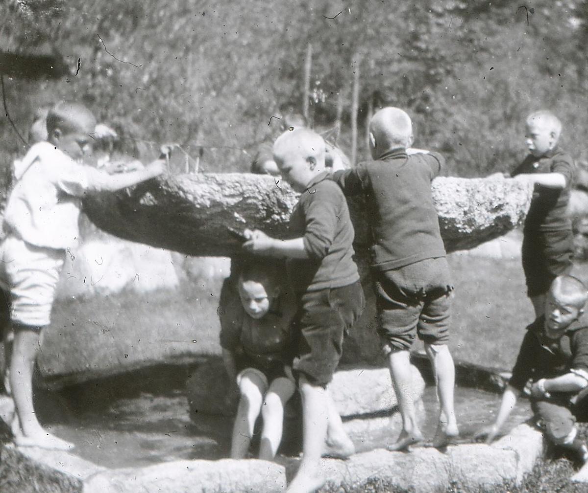 Jeg husker jeg studerte svært på hvor skolen var. Det var jo ingen skole, bare ett hus hvor vi bodde. Ingen svarte tavler, ingen pulter vi satt rundt ett stort bord og hadde det hyggelig. Tegning var morsomt og her var Otto selvfølgelig lærer. Det vi lærte fra bøkene, lærte vi ved det store bordet med Tilla som leder. Ellers hadde vi undervisning der vi var. I hagen, på Vakåssletta eller på Skaugumsåsen, stjernehimmelen blev også studert. Tiltross for denne undervisningsformen lå vi foran byskolens pensum når vi kom hjem etter kortere eller lengre tid. Intet var forsømt.