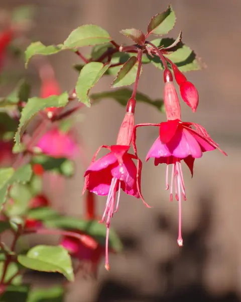 Beskrivelse: Fuksia er hjemmehørende i Sør-Amerika og kan bli mange meter høye busker. Kjent i Europa på begynnelsen av 1800-tallet. Enkelte arter av fuksia kan dyrkes utendørs, særlig i milde kyststrøk på Sørlandet. Det finnes mellom 100-110 ulike arter av planten. På museet har vi ulike typer fuksia: