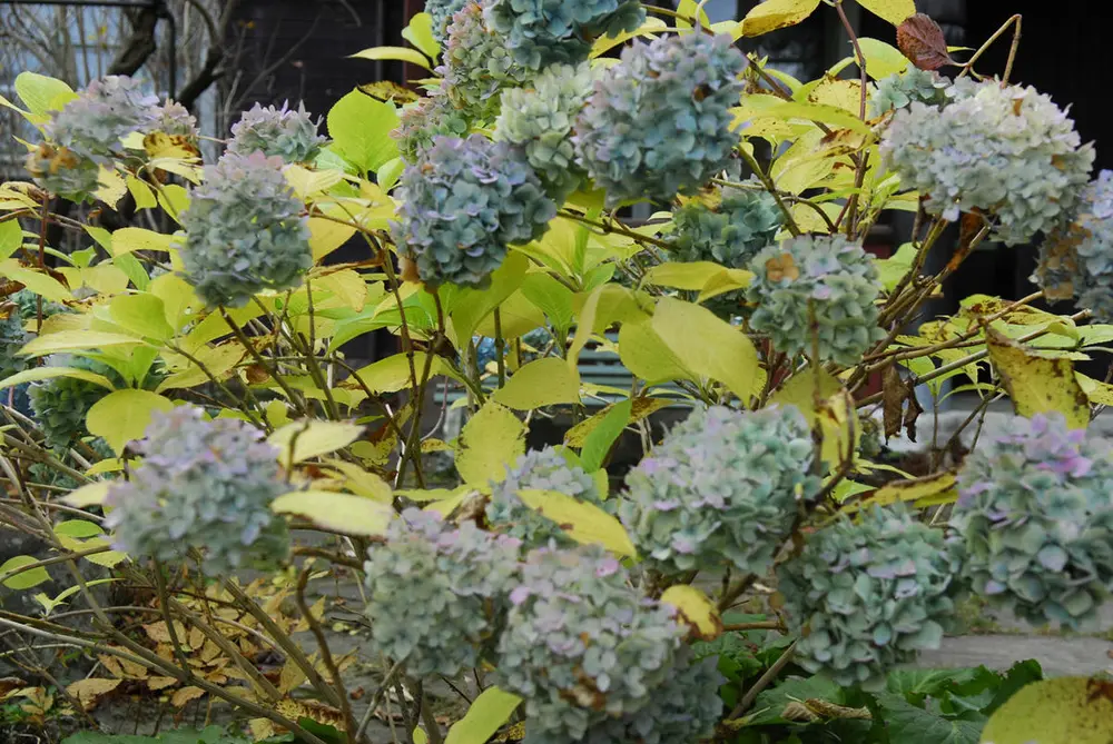 Vår flotte blå hagehortensia i oktober. Foto: Knut Bry