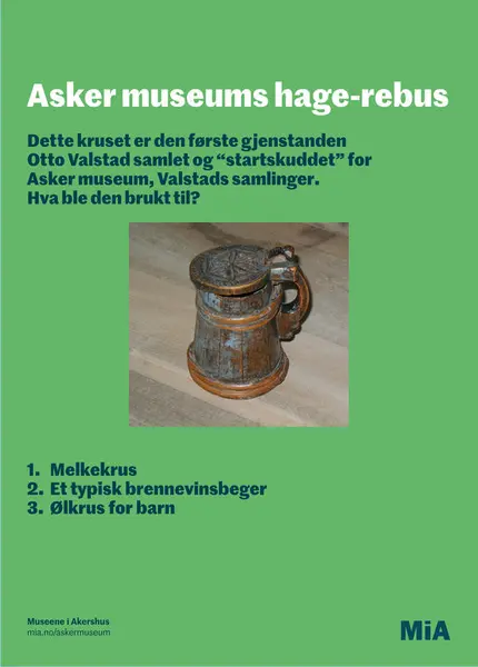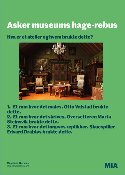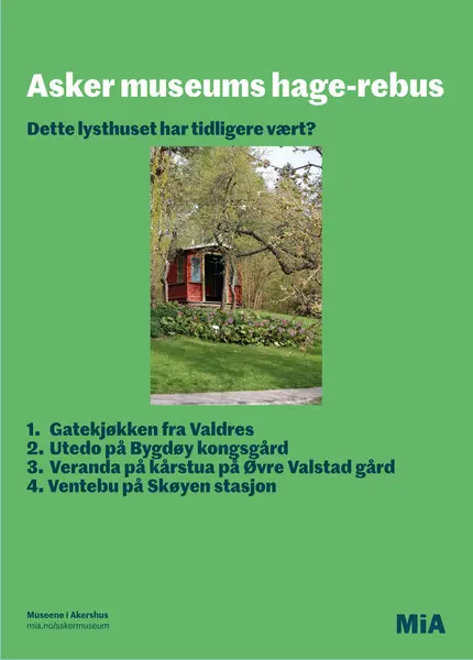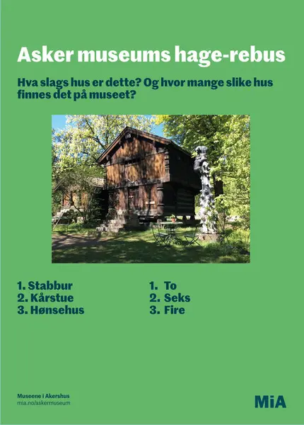 Hagerebus på Asker museum Her kan du prøve deg på vår nye hagerebus - rett fra sofakroken! Fasiten finner du nederst på siden. 1/11 1. 2/11 2. 3/11 3. 4/11 4. 5/11 5. 6/11 6. 7/11 7. 8/11 8. 9/11 9. 10/11 10. 11/11 11. Åpne eller lukk bildetekst Fasit 1. 3 2. 1 og 3 3. 1 4. 3 5. 3 6. 27. 1 8. 39. 2 10. 2 11. 3