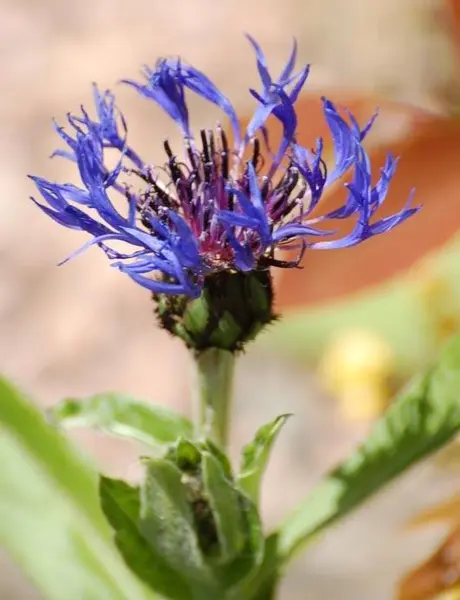 Honningknoppurt er med andre ord en veldig hardfør staude, med høyde 40-60 cm. Svært vakre duftende blomster sitter enkeltvis i toppen av opprett stengel. En blomst er 5 cm bred og har en blomsterkurv med lange blå og flikete kantkroner med purpurrød midtskive (kan minne om den blå kornblomsten, men denne har mindre, tettere blomsterkurver og tynne, trådsmale blader). Honningknoppurt har flere lansettformete, spisse, grågrønne og på undersiden hårete blader.