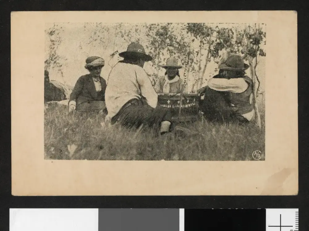 Hulda sammen med tre menn fra Sioux-nasjonen ved Devils Lake, Dakota