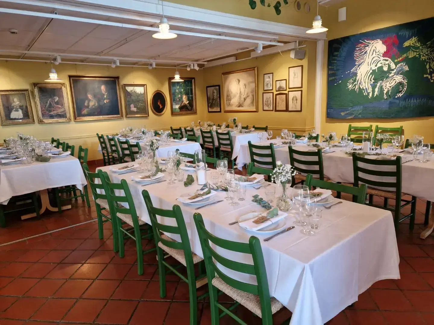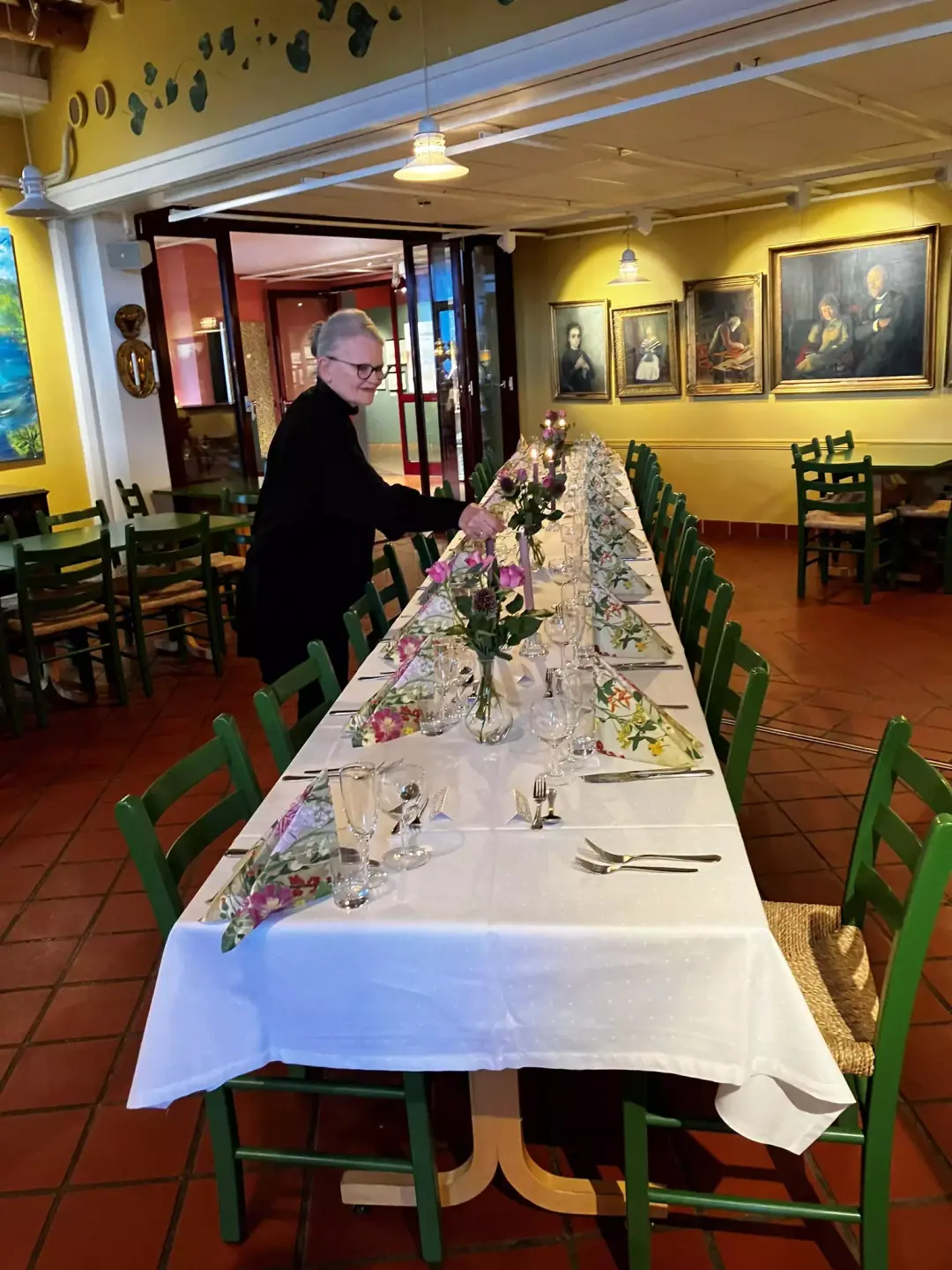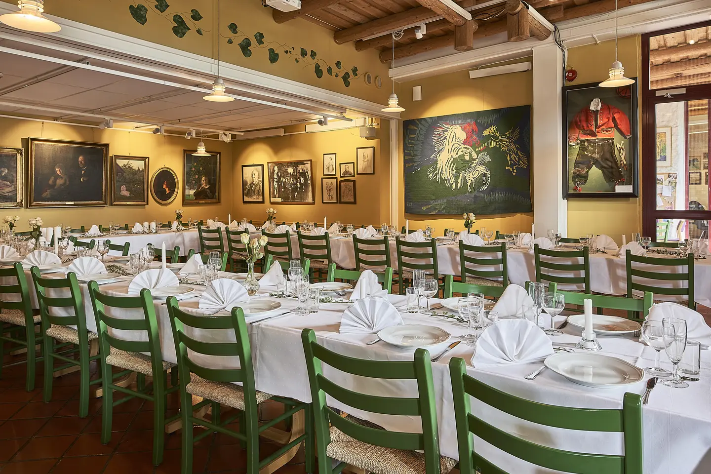 I Kafé Gunhild kan det det dekkes til 50 personer, og ved å åpne mot vestibylen kan det dekkes til noen flere.