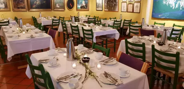 Det kan lages mat på kjøkkenet, men det er ikke et storkjøkken. Mange velger å bestille middag og andre retter fra et cateringselskap. Kjøkkenet har kjøleskap og noe frysekapasitet.