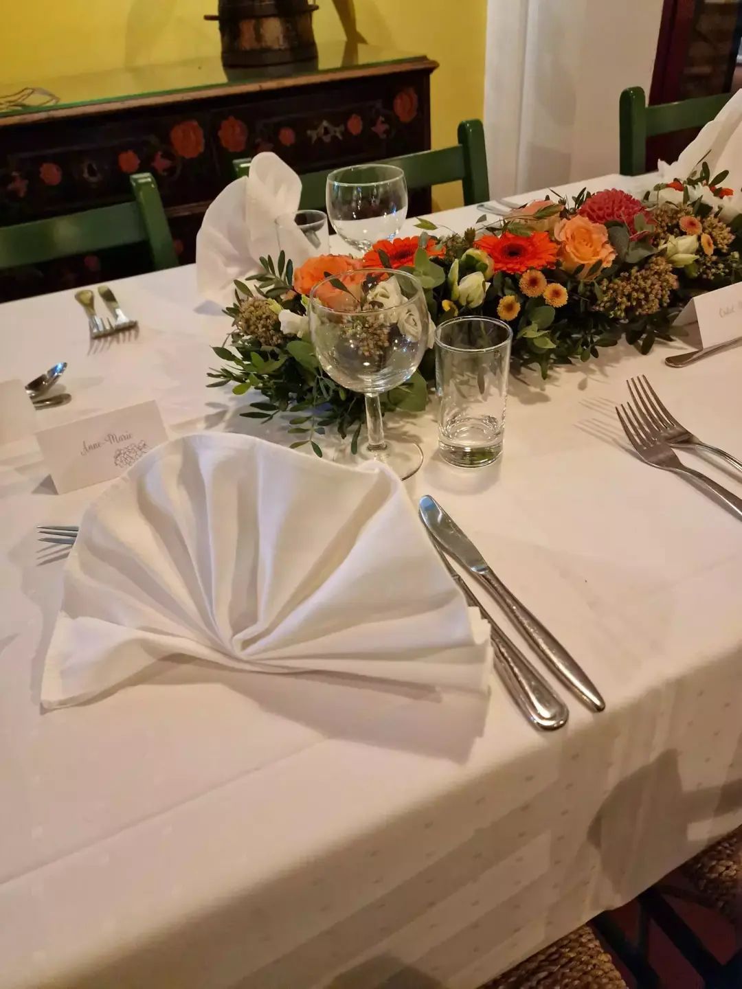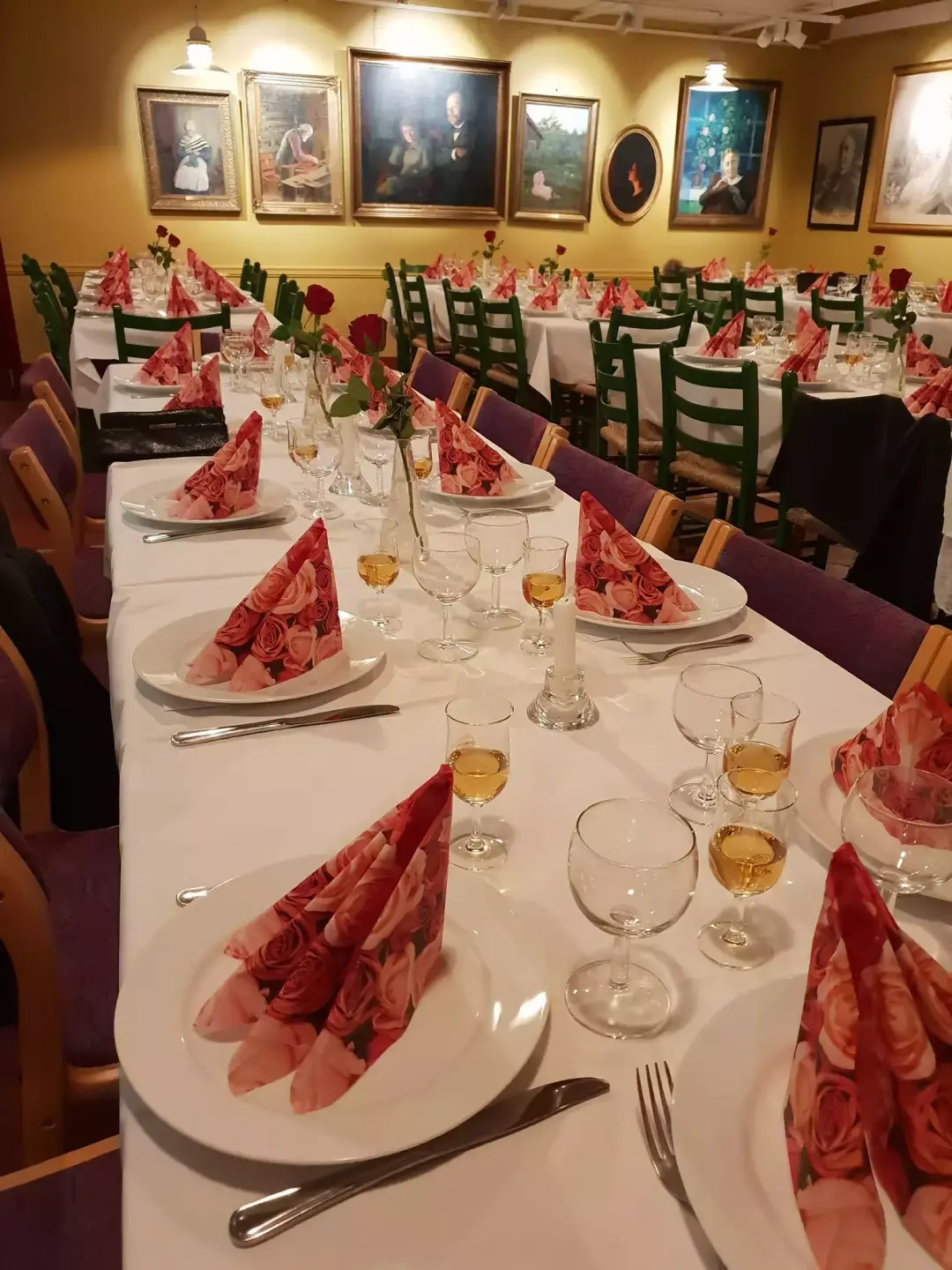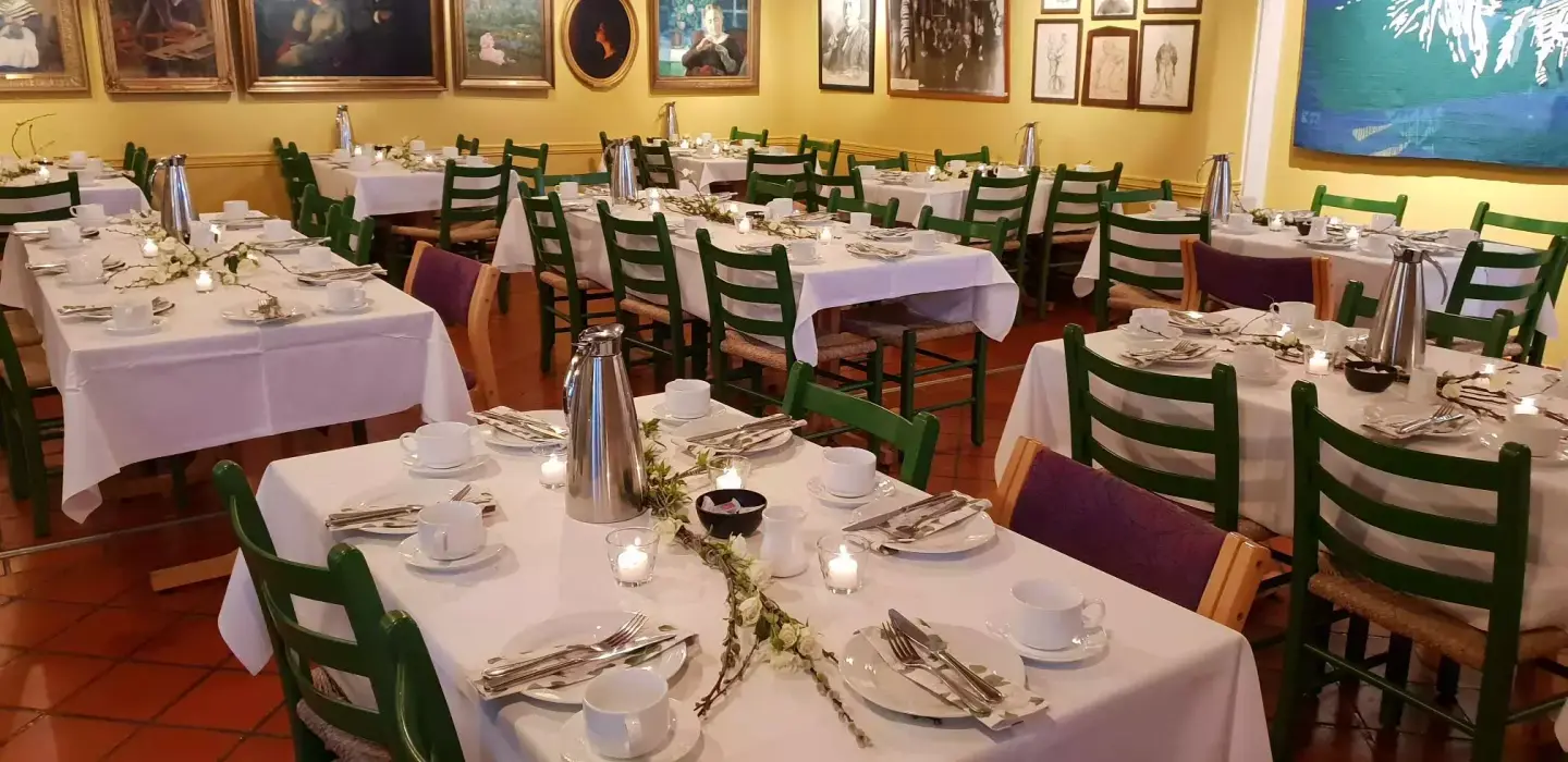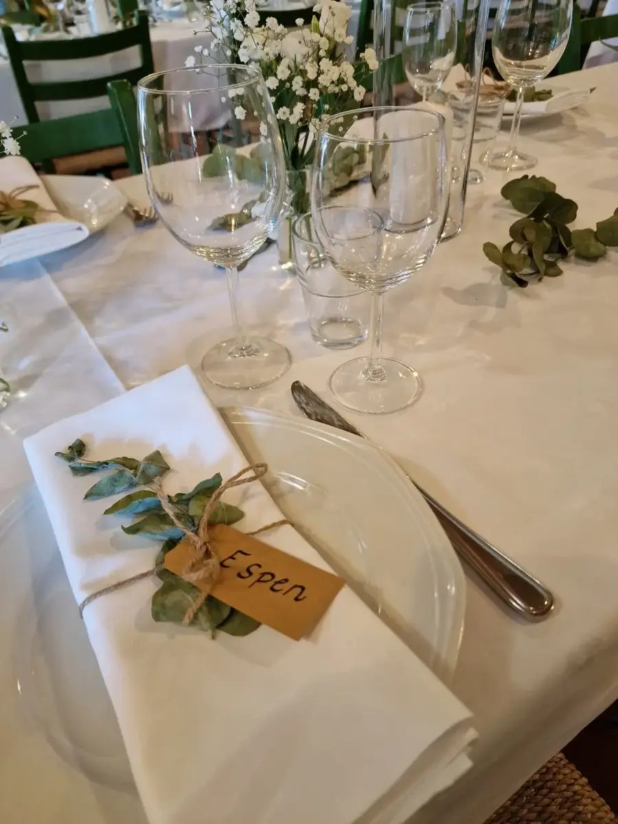 - Leier må selv sørge for duker, servietter, blomster, mat drikke, filterkaffe, te. Hvite duker kan lånes til kr. 60,- (inkl.moms) pr. meter.