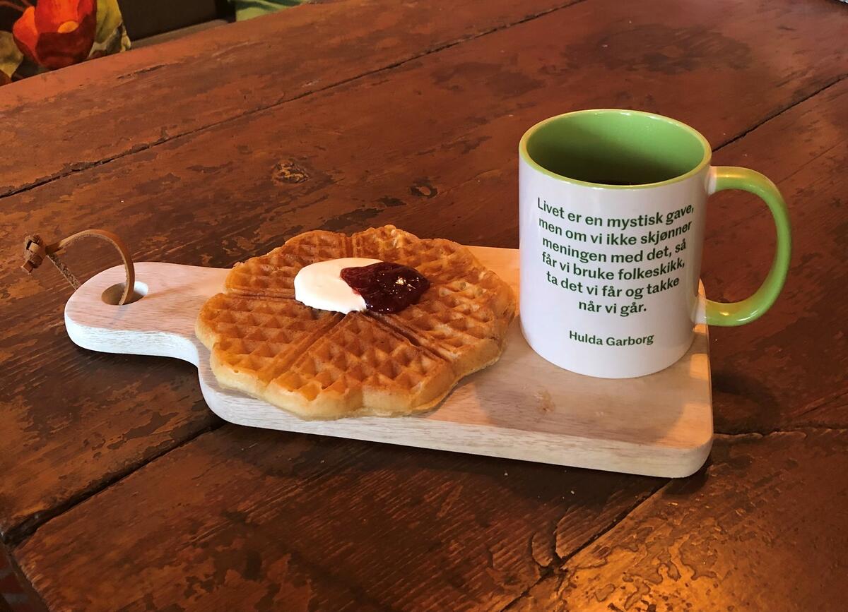 I Kafè Gunhild er det mulig å få kjøpt litt enkel mat og drikke. Vi har sitteplasser både inne og ute. Noe av det du kan finne i kafeen er:
