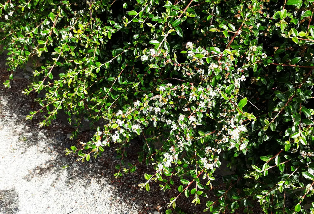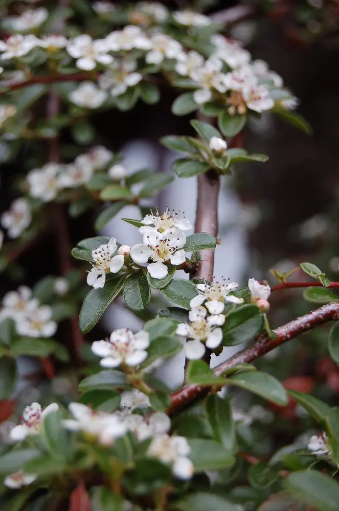Beskrivelse: Kommer fra de nord-vestre deler av Kina. Løvfellende busk 0,5-1 m høy, og tett med hengende eller krypende grener som følger underlaget. Små runde/ovale blader som får flott høstfarge – faller tidlig av. Blomster er rosa og etterfølges av røde runde bær som også faller fort av. Spises gjerne av fugler som dermed også sørger for spredning.