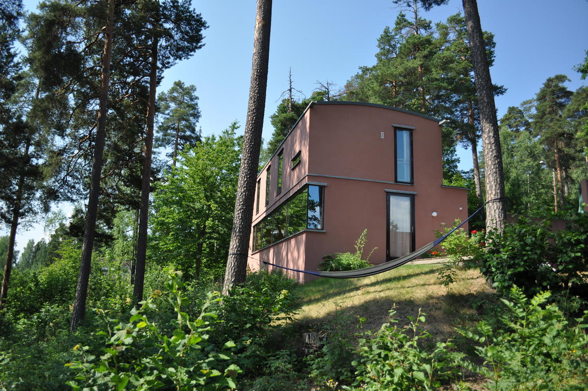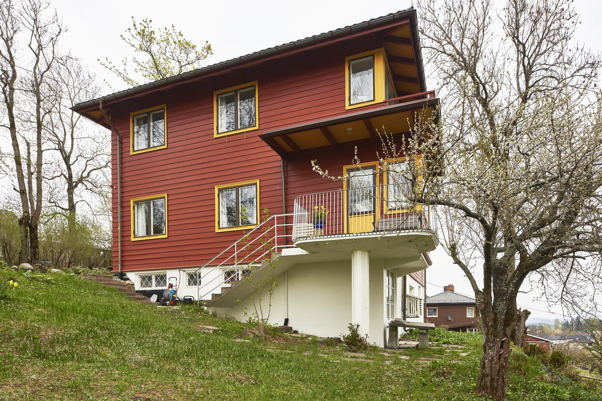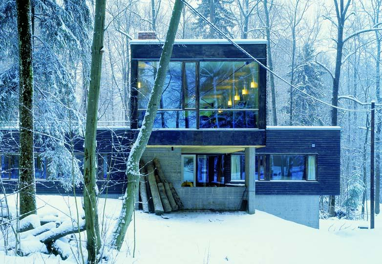 Denne eneboligen innerst i Hanevoldveien, nord for Asker sentrum, er tegnet av arkitektene Einar og Christian Dahle. Boligen kan beskrives som to sigarkasser lagt på tvers av hverandre.