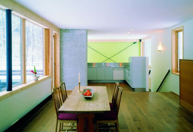 Huset ble bygget på stramt budsjett. Boflaten er knapp, men fleksibel og har spesialtilpasset innredning. Huset er plassert naturlig i terrenget og det er et spennende samspill mellom boligen og omgivelsene.