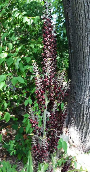 På et forgrenet blomsteraks sitter utallige mørke brunrøde små blomster. Gule støvbærere «lyser» opp den mørke blomsten. Lukter lett surt. Planten blomstrer visstnok først når den er ti år gammel, og da oftest bare annenhvert år. Tykk loddrett rot med 10-20 cm lange siderøtter. Planten finnes også med grønnhvite, skittenhvite og gulgrønne blomster.