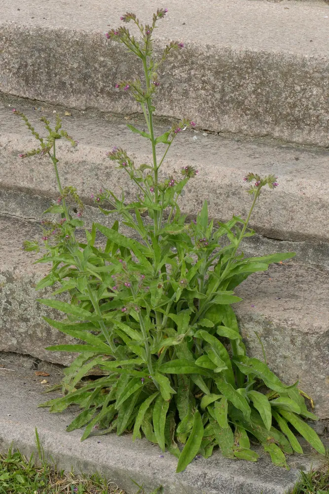 Beskrivelse: Opprinelig fra Europa og Vest-Asia. Nå vanlig på Sør og Østlandet. En hardfør toårig til flerårig plante, høyde 30-80 cm, som var å finne i middelalderens klosterhager. Første året dannes en rosett med smale lansettformede blader. Andre året kommer en opprett stengel med spredtstilte, lange lansettformede blader. Blader og stengler er blågrønne og ru. Flere blomster sitter samlet i ensidige klaser som først er rødlilla, senere blålilla – fem kronblader som er gulhvite i midten. Rik på nektar. Kraftig, lang rot som ikke skal plantes for dypt, men like under jordoverflaten. Kan virke litt uryddig i vekstformen. Trives best i veldrenert, solvarm jord. Tendens til meldugg utpå sommeren.