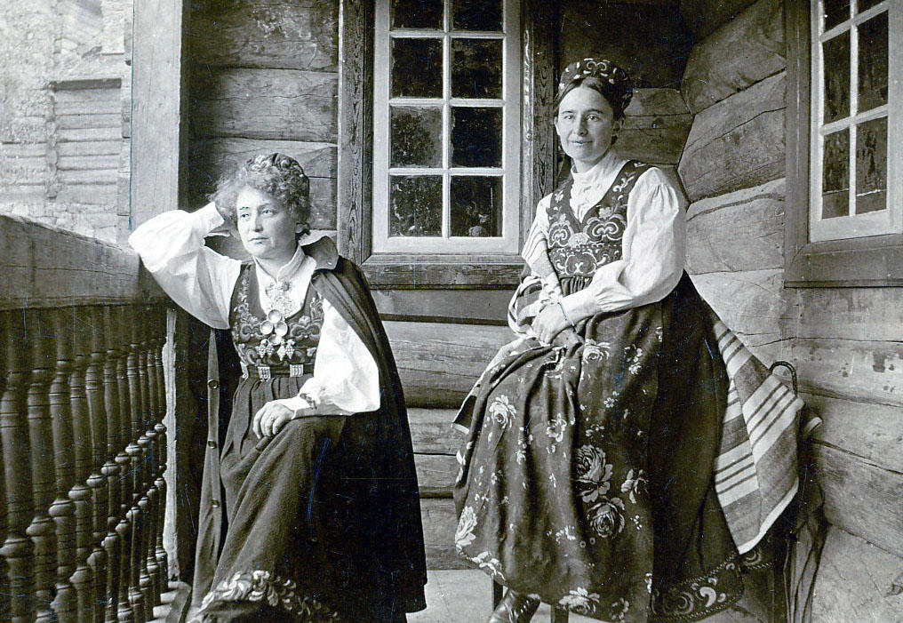 Hulda Garborg (t.v.) og Tilla Valstad (t.h.) på Maihaugen - 2/2