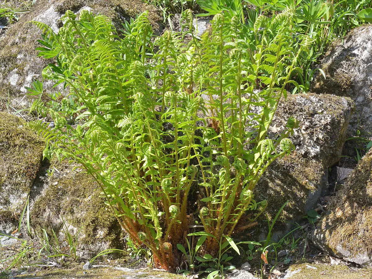 - Innerst står smale, opprette og spordannende blader som raskt blir brune (høyde 50-60 cm). Sporedannelsen skjer i juli.