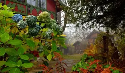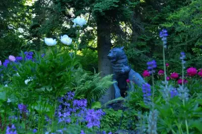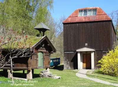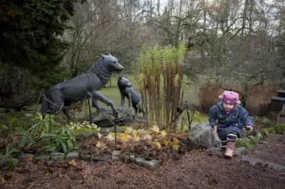 У сад, закладений господарями у стилі італійського бароко, з його рідкісними рослинами, фруктовими деревами, скульптурами, фонтанами, кованим порталом у стилі арт-нуво, доставленим Отто зі Всесвітньої паризької виставки 1900 року, були також звезені старовинні споруди, зразки норвезької дерев'яної архітектури.