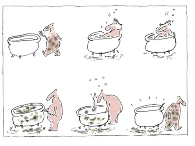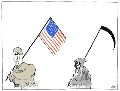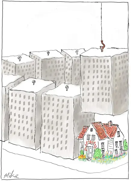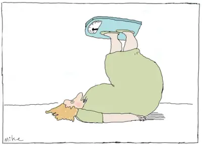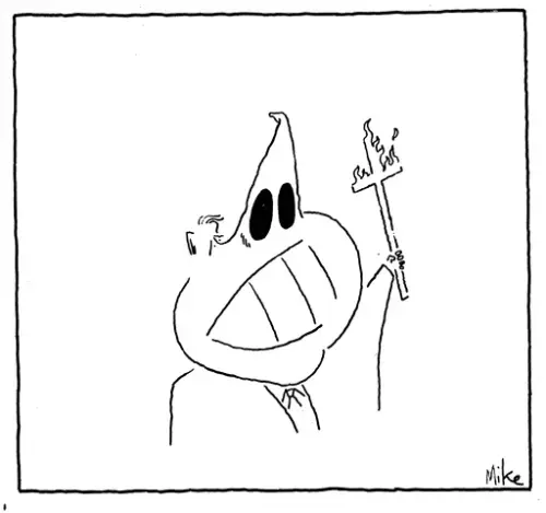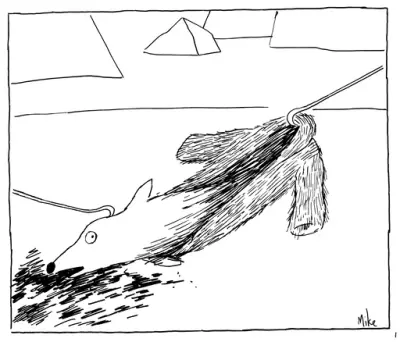 Mike er kort sagt utrulig god. Nesten misunnelsesverdig sett fra en kollegas ståsted. Forbilledlig enkel strek. Ikke noe overflødig. Og imponerende idéer! Pussigheter som tar et lite sekund å forstå. Mike inspirerer!