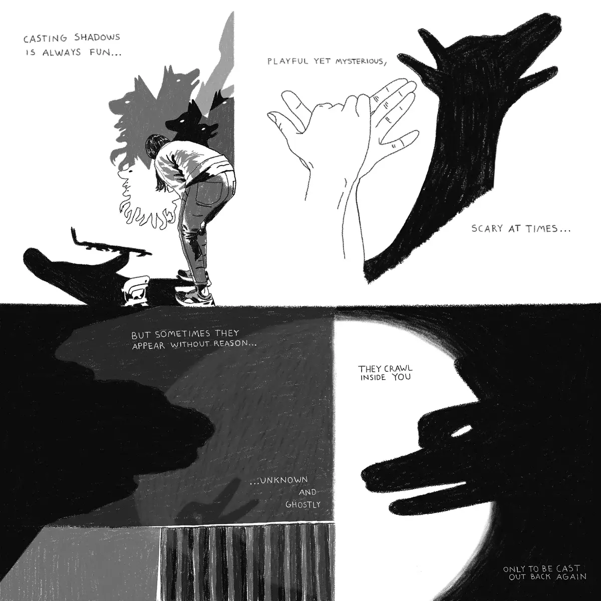 Arbeidet hennes er påvirket av en sterk drivkraft mot å redefinere fortellingene som utgjør virkeligheten vår. Hun skaper fiksjoner fulle av mystikk, håp og myndiggjøring. Fortellingene er så fantasifulle og utenomjordiske at de virker utenfor rekkevidde, men gjennom tegningenes materialitet blir de likevel til en intim og magisk tilstedeværelse.