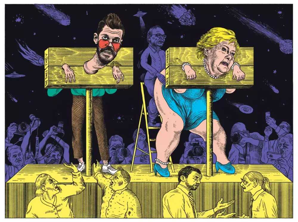 Vi åpner 2024 med et tilbakeblikk på 2023. 42 tegnere viser sine beste arbeider fra dagspresse og helgebilag. Det var et år med mye drama i norsk politikk, der den ene habilitetssaken ble mer spektakulær enn den forrige. Det var dyrtid, rentesjokk, ekstremvær, naturkatastrofer og Nobelpris til Jon Fosse. Blant verdens mange konflikter fortsatte krigen i Ukraina og en ny startet i Midtøsten.