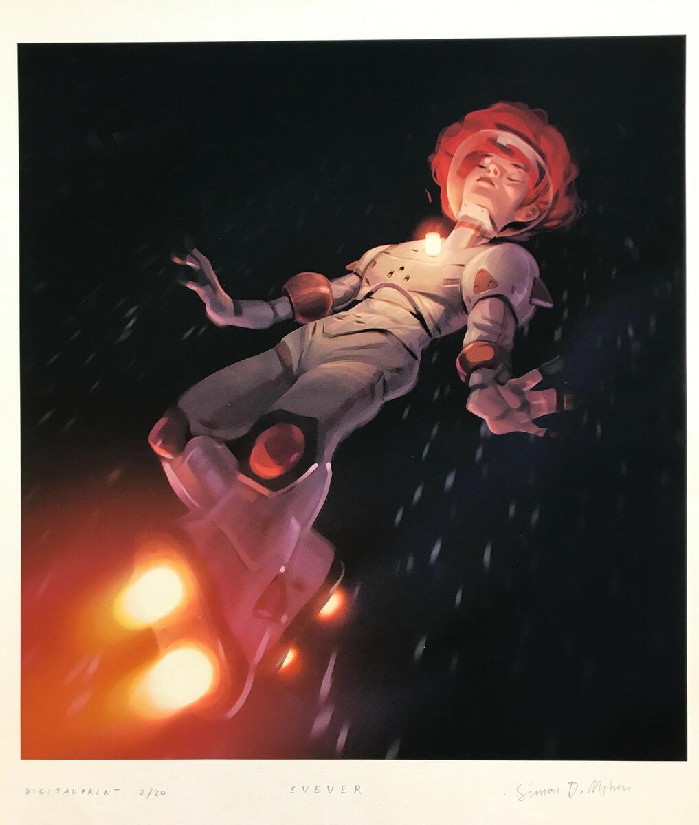 Han har også tegnet og designet diverse bokomslag for Cappelen Damm, og tok over Kaptein Sabeltann universet fra onkel Egil, med to billedbøker på Ena forlag i 2020 og 2021. I 2021 kommer også boka «Insektliv» på Cappelen Damm. Simon var med på ”De unges utstilling” i Tjøme kommune i 2016 men dette er første gang vi får vist frem digitale kunsttrykk og konsepttegninger i større skala.