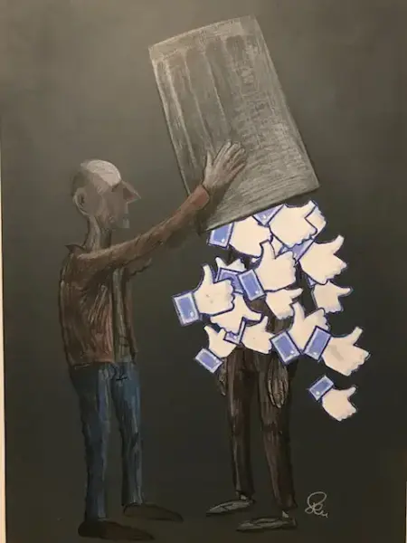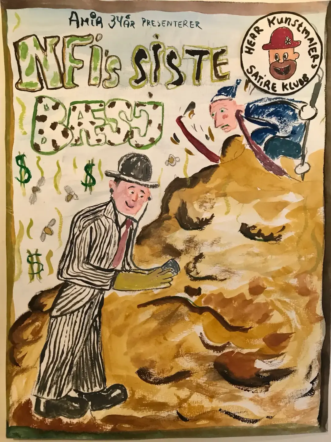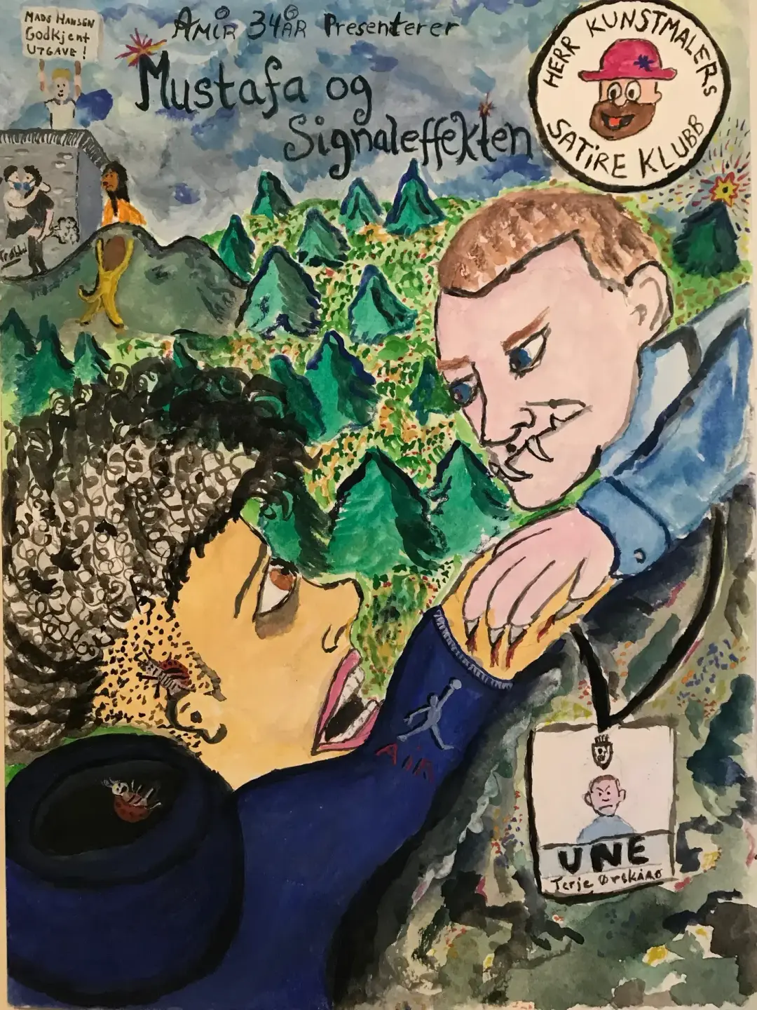 Vi har sikret oss malerier fra Amir Asgharnejad, også kjent som bare Amir eller Herr Kunstmaler, Maleriets Konge. Amirs undefundige humor kler satiretegningen godt, og vi har hatt stor glede av hans Satireklubb på instagram i høst! Amir er billedkunstner, skuespiller og komiker senest kjent fra serien Kongen befaler. Amir er for øvrig nominert til Årets kunstner i Subjektprisen 2021.