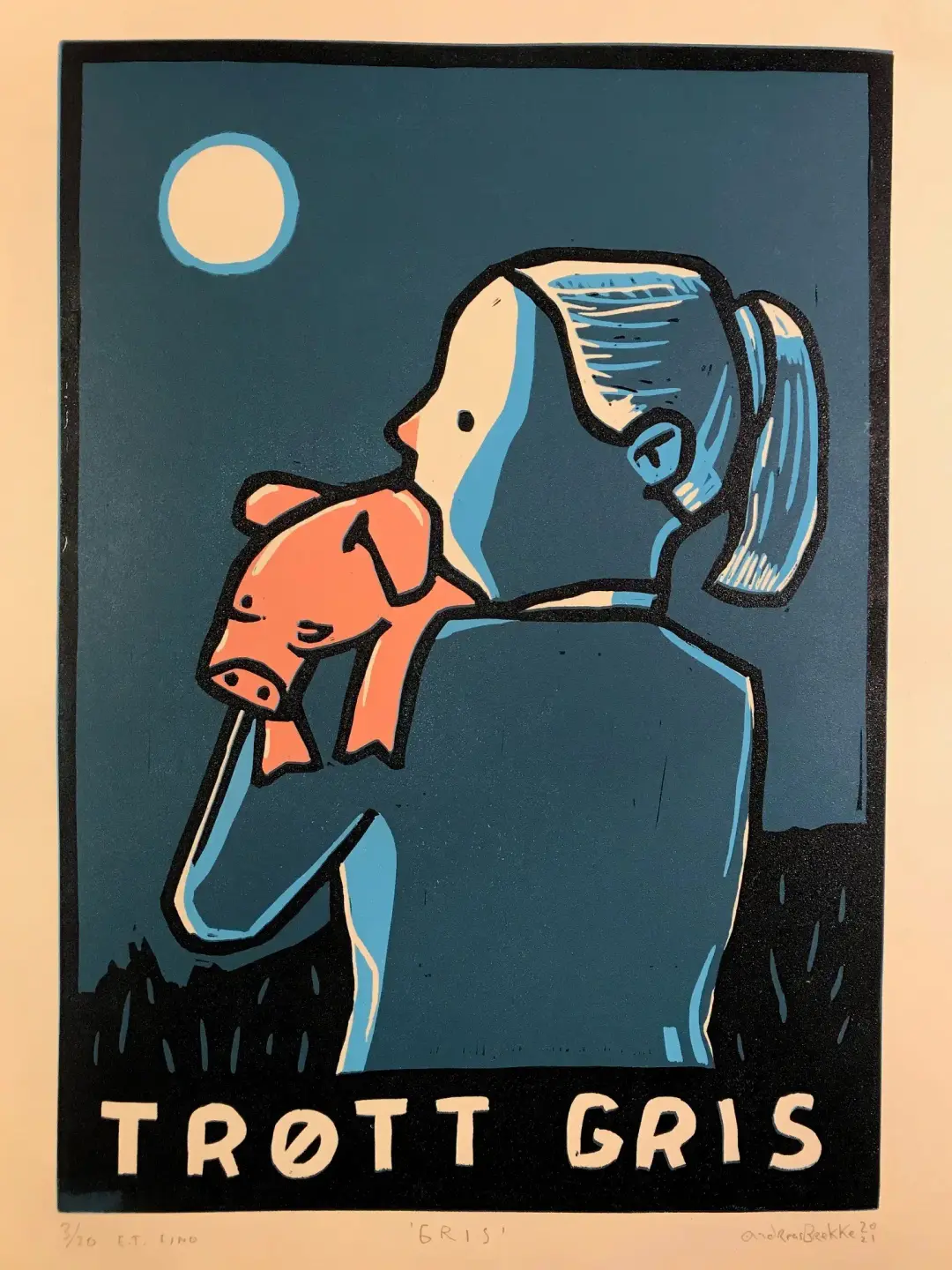 I tillegg til sin faste portefølje hos oss, som er tilgjengelig i nettbutikken (se over), har Andreas med to nye linotrykk, selges med og uten ramme så lenge det er tilgjengelig.