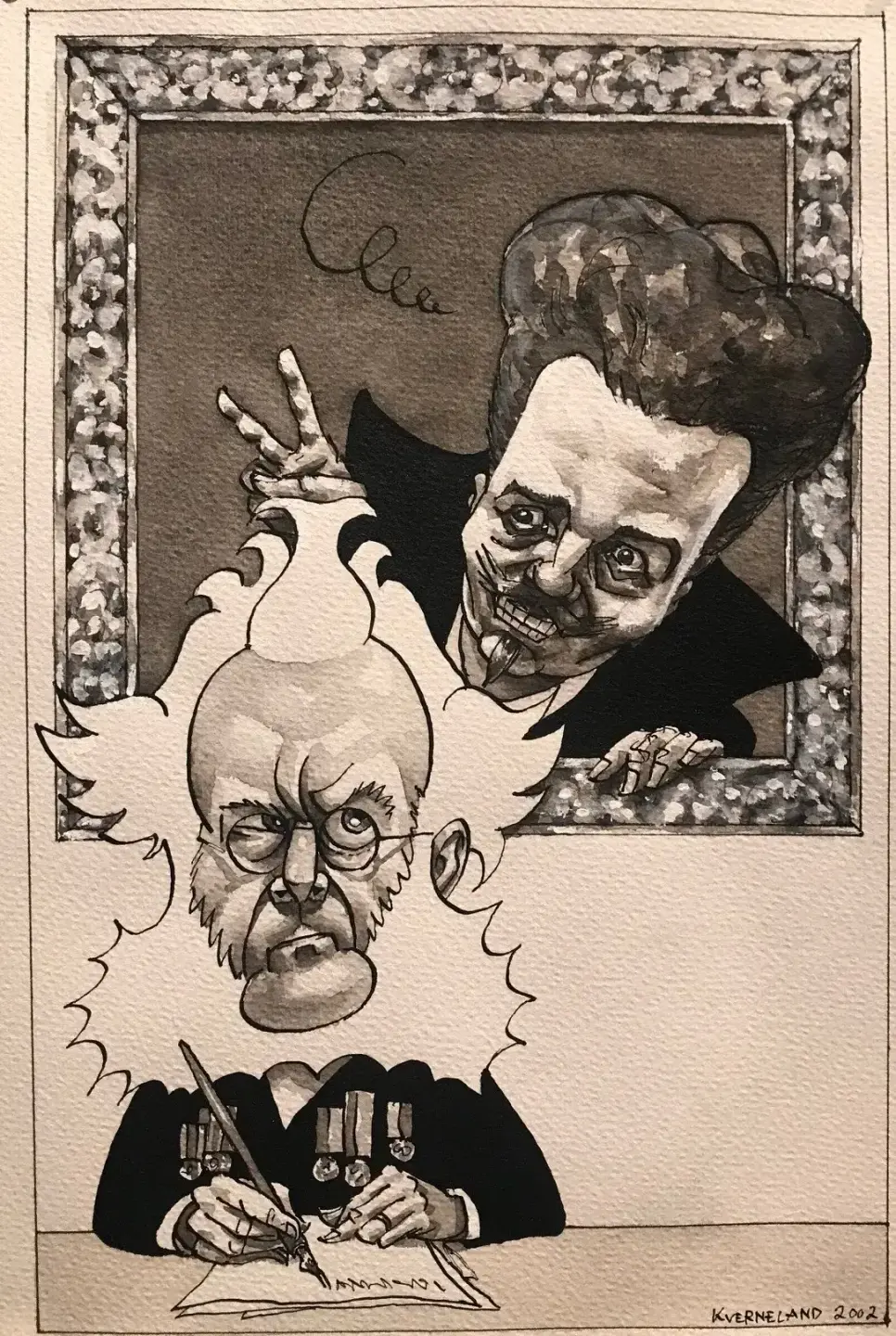 Steffen Kverneland: Ibsen, penn og akvarell på papir, kr 9.000 - 2/7