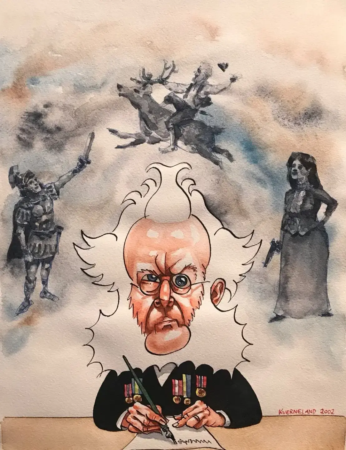 Steffen Kverneland: Ibsen, penn og akvarell på papir, kr 8.000 - 4/7