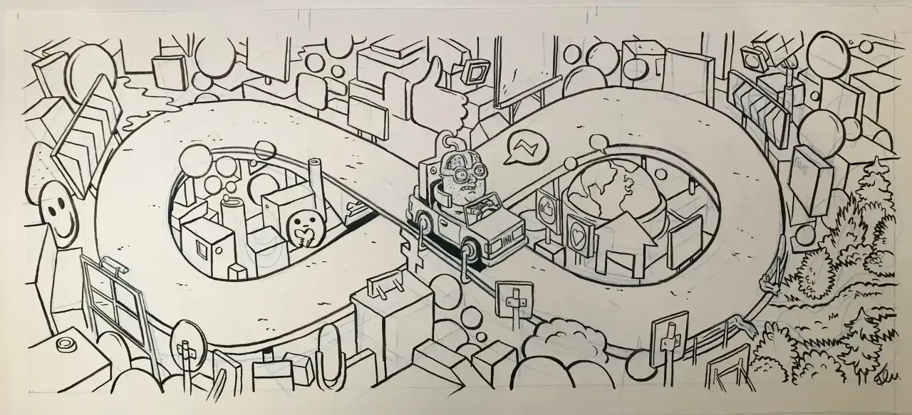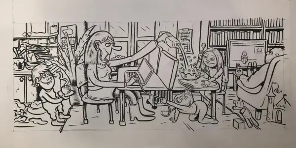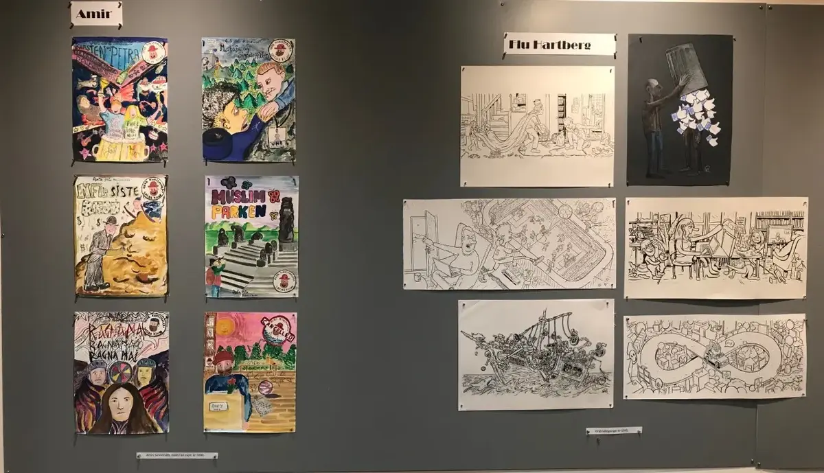 Flu stiller med et utvalg originale tegninger. Han er tegneserieskaper, illustratør og barnebokforfatter og illustrerte kommentarspalten i Dagbladet på lørdager fra 2012 til den ble lagt ned i høst. Flere av tegningene er originalene fra denne spalten før de ble digitalt fargelagt.