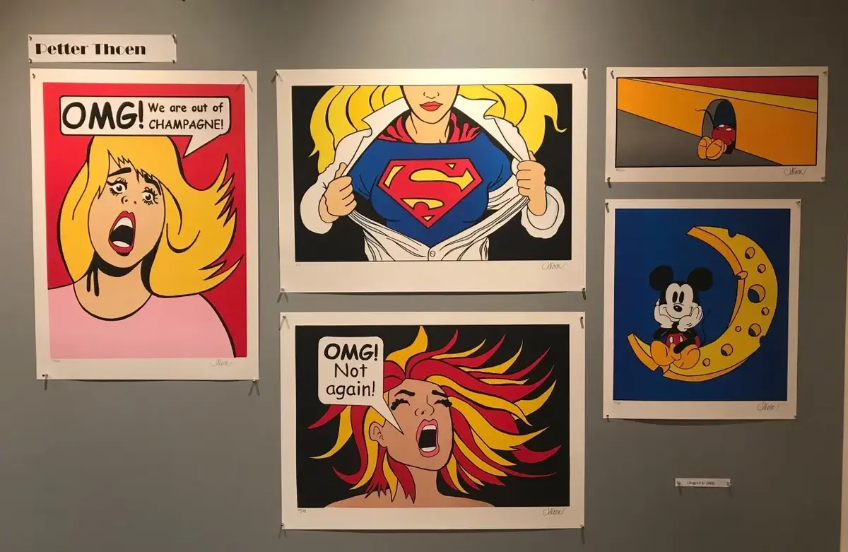 Det er med stor glede å invitere Petter Thoen inn i varmen hos oss. Thoen startet sin karriere som tegneserietegner på 50-tallet og er kjent for sin fargesterke popkunst. Thoen bidrar med malerier og litografier. Han har også egen lisens fra Disney til å tegne deres karakterer, så ikke bli overrasket over å se Mikke dukke opp!