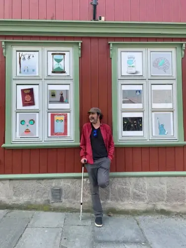 Mohsen Hossaini foran sin utstilling i 2021